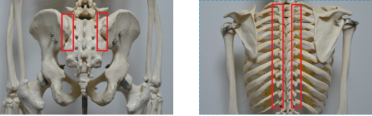 背骨と肋骨の関節(肋椎関節)や骨盤の関節(仙腸関節)が関係しているケースが多く見られます。