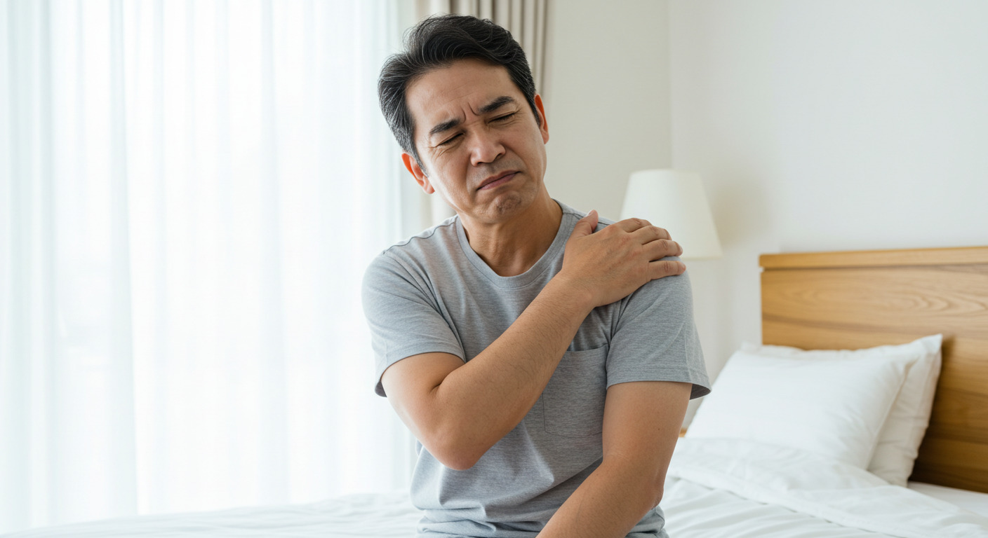 「寝起きに肩がガチガチで、動かすのがつらい」