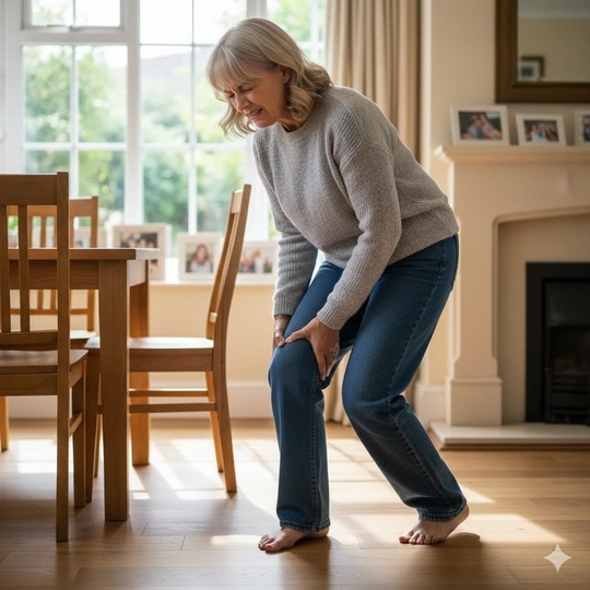 太ももの前(大腿四頭筋)が硬すぎたり弱っていたりすると、立ち上がりの瞬間に膝へダイレクトに負担が加わりやすくなります。