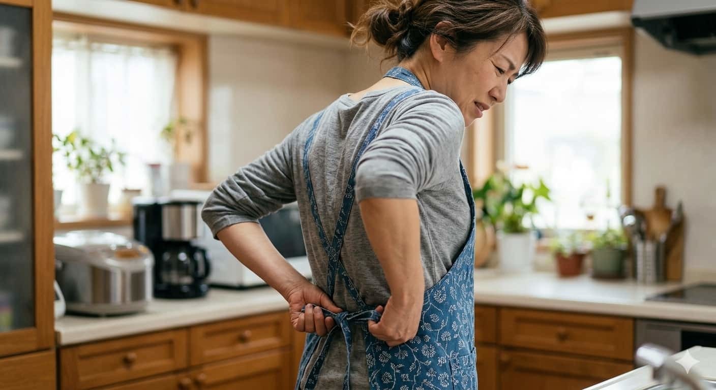 日常動作の中でも、“後ろに回す動き”は特に制限が出やすいです。