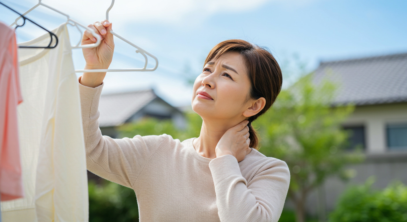 「洗濯物を干すときや、上を見上げる動作で首がつまる」